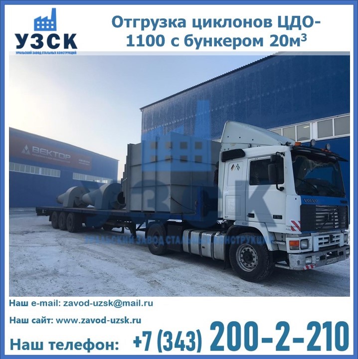 Циклоны ЦДО-1100 с бункером на 20 кубов были отгружены в декабре 2018 года в г. Новосибирск Балыкчы.