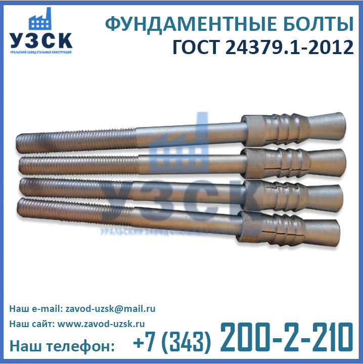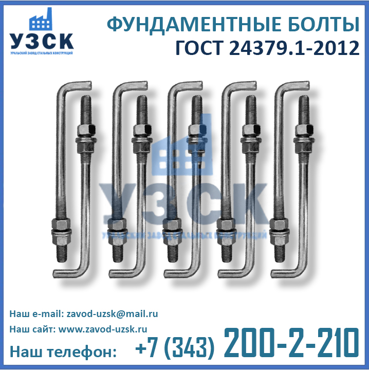 Приобретая болты ГОСТ 24379.1-2012 напрямую у завода-изготовителя вы не переплачиваете многочисленным посредникам. Кроме того, при обширных объемах закупки завод УЗСК предлагает скидки на анкерные болты М 12, М 16, М 20, М 24, М 30, М 36, М 42, М 48, М 52, М 56, М 64, М 72, М 80 и М 90.