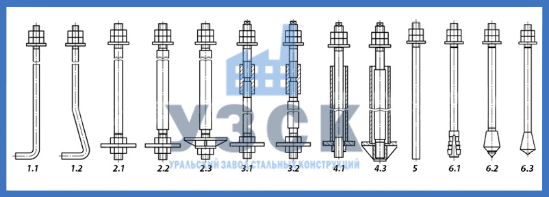 Уральский Завод Стальных Конструкций осуществляет изготовление болтов анкерных фундаментных в следующих вариациях: