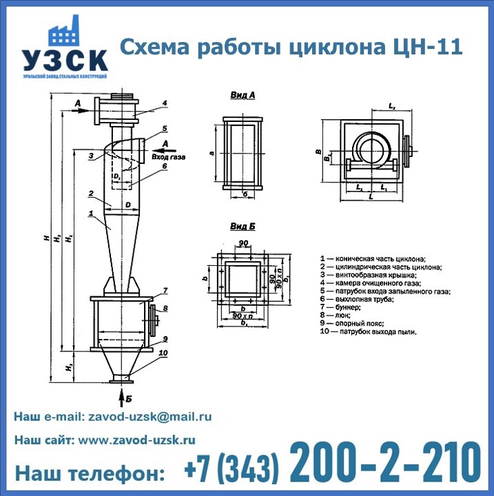 При этом ощутимой разницы в цене между универсальным и узконаправленным, подобранным в соответствии с конкретными техническими требованиями циклоном, нет. Стоимость воздухоочистительного оборудования типа циклон обусловлена маркой и толщиной стали, из которого он изготовлен, сложностью и специфичностью конструкции, наличием дополнительного оснащения (бункер, улитка и другие). При необходимости, на заводе УЗСК в Балыкчы будет изготовлен циклон по индивидуальным техническим чертежам заказчика.