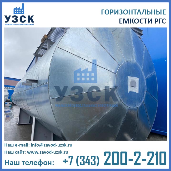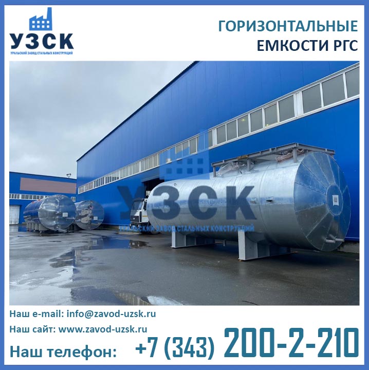 Завод «УЗСК» производит различные типы резервуаров горизонтальных стальных цилиндрических марки РГС