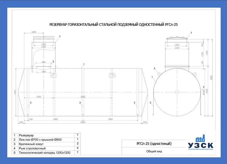 РГСДп-25: горизонтальный резервуар двустенный подземного расположения.