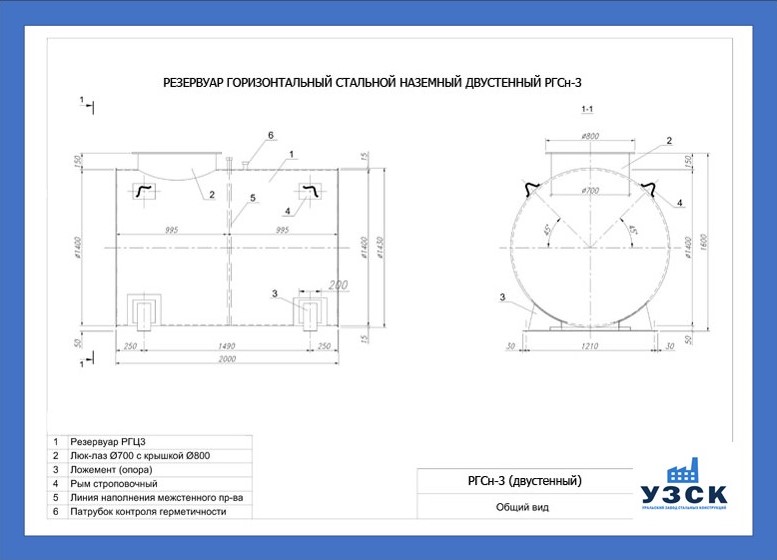 - РГСДн-3: горизонтальный резервуар двустенный наземного расположения;